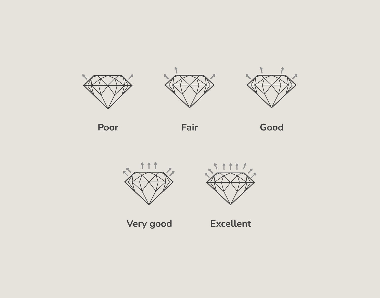 This chart evaluates how well a diamond has been cut, impacting its symmetry, proportion, and ability to reflect light. Grades range from excellent to poor. An excellent cut provides optimal brilliance and fire, while lower grades result in less sparkle. The chart aids in understanding the cut's influence on a diamond's beauty.