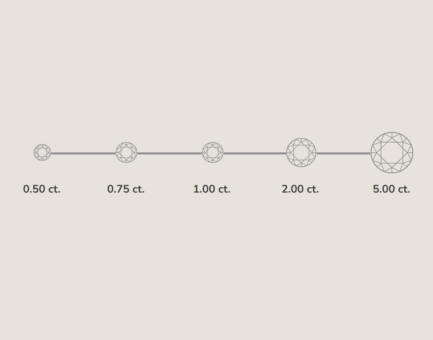 A diamond carat chart illustrates the size differences between diamonds of various weights. Carats measure weight, not size, but larger carats typically mean a bigger diamond. This chart helps visualize how diamonds of different carat weights appear in size compared to one another.