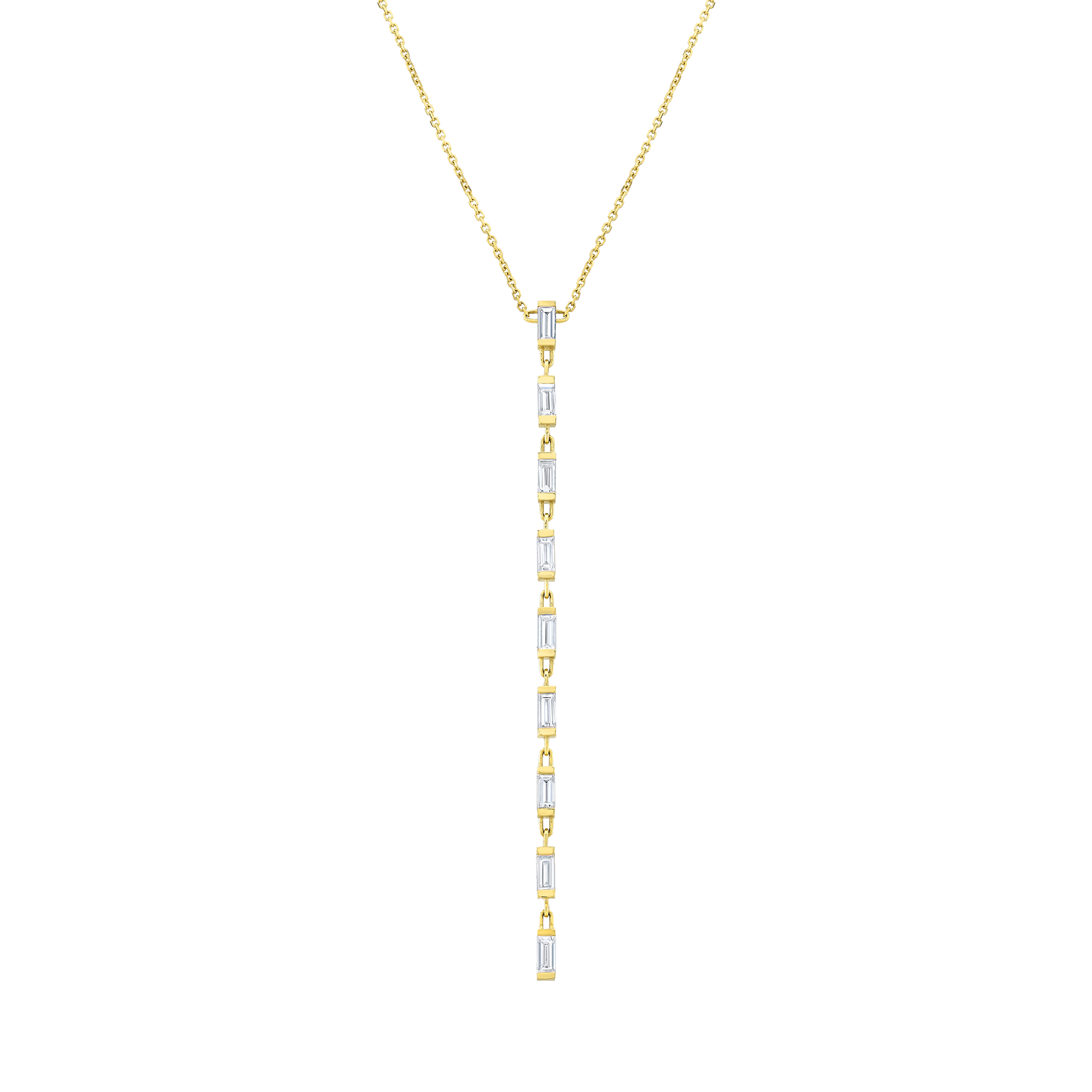 Be the center of attention in our breathtaking Baguette Lariat Necklace. Crafted in 18K gold, this exquisite offering from our Waterfall Collection boasts a total carat weight of 2.15 of baguette VS diamonds. This Sky Askari piece adds a touch of luxury and elegance to any outfit.