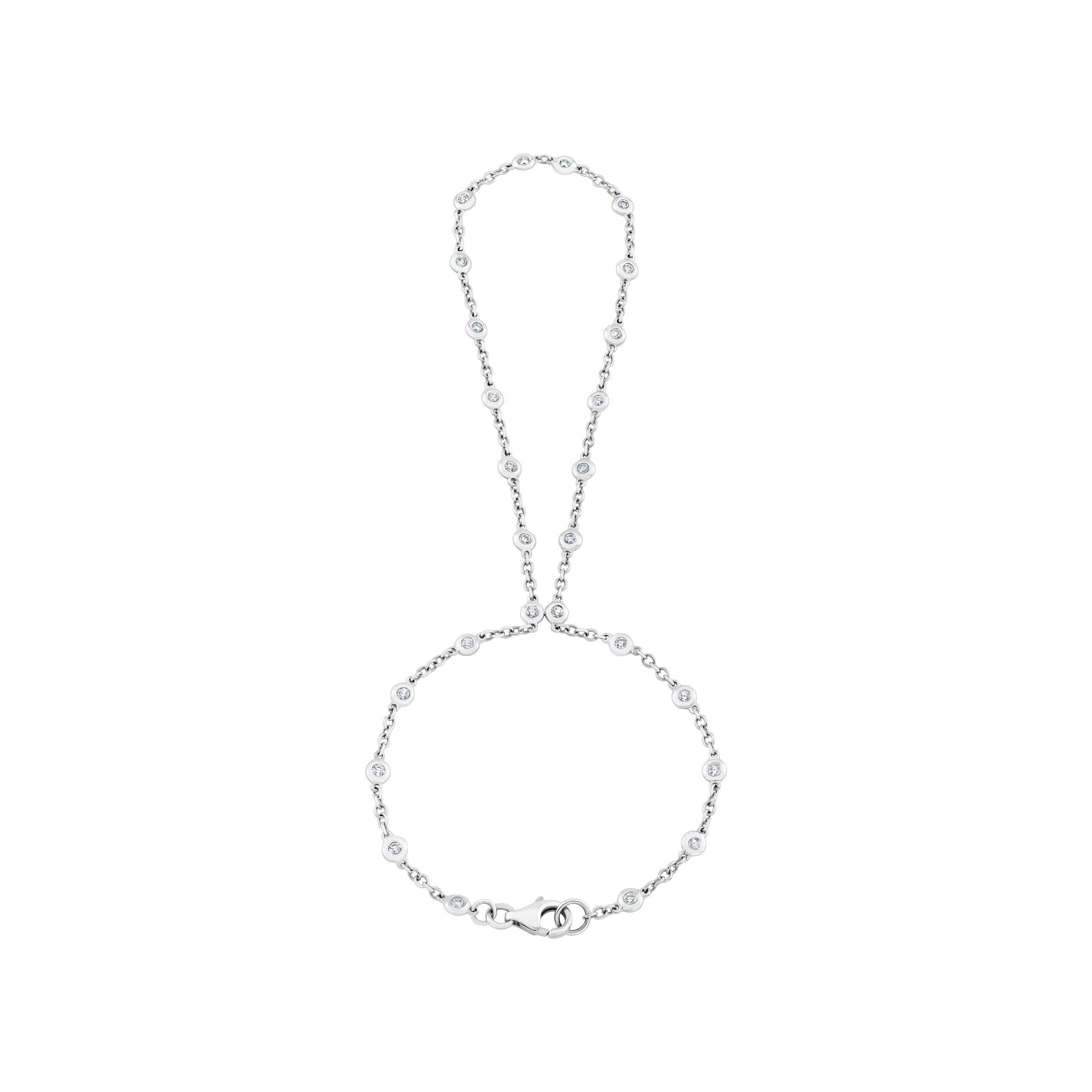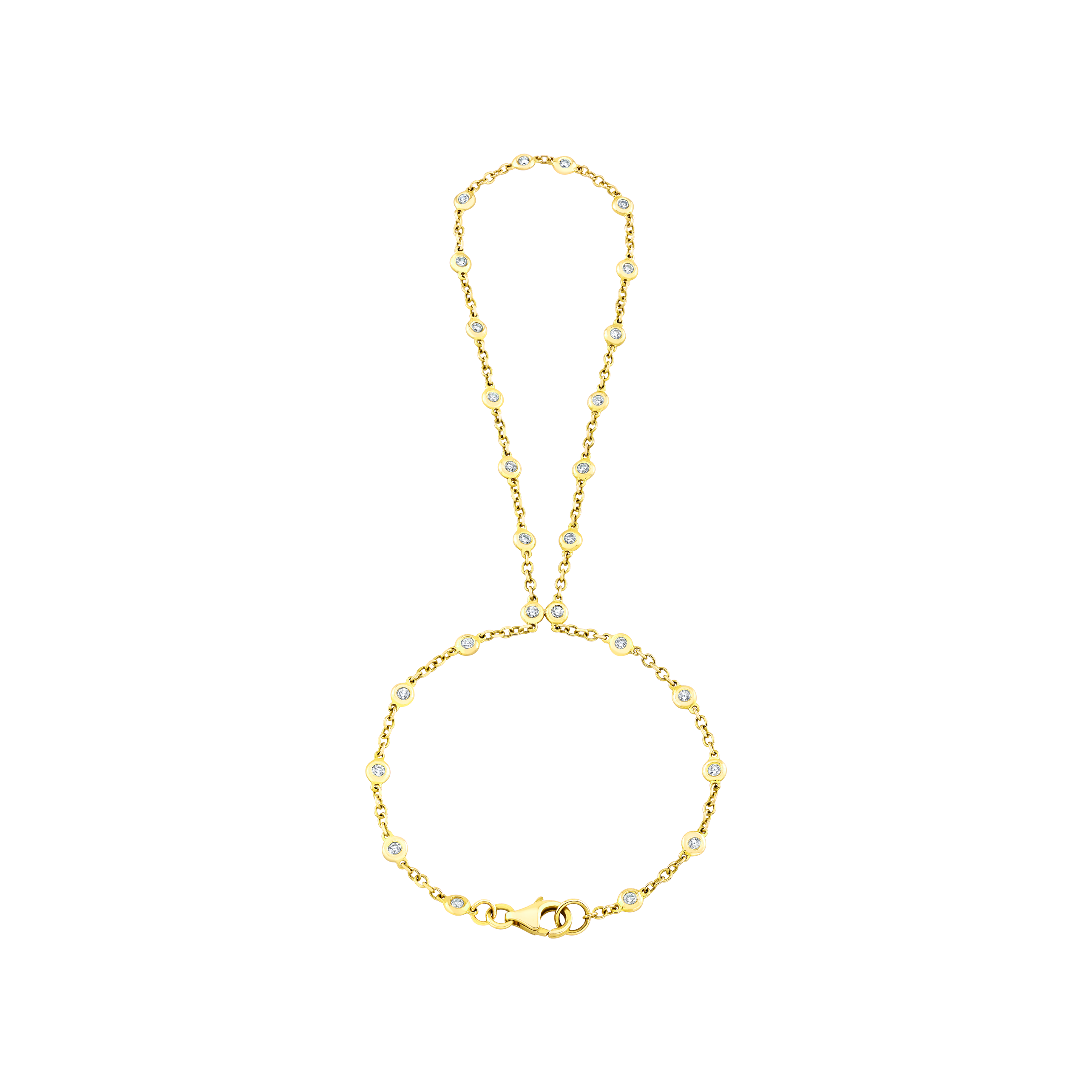 Step into the enchantment of our Sky Askari Stars Collection with this exquisite bezel-set diamond hand chain. Meticulously handcrafted in 18k gold, it is adorned with a total carat weight of 1.82 VS round brilliant cut diamonds. The adorning diamonds on the chain add a chic touch, symbolizing the shining stars that gracefully twinkle with every movement on your body. Make a statement with this simple yet sophisticated body chain.
