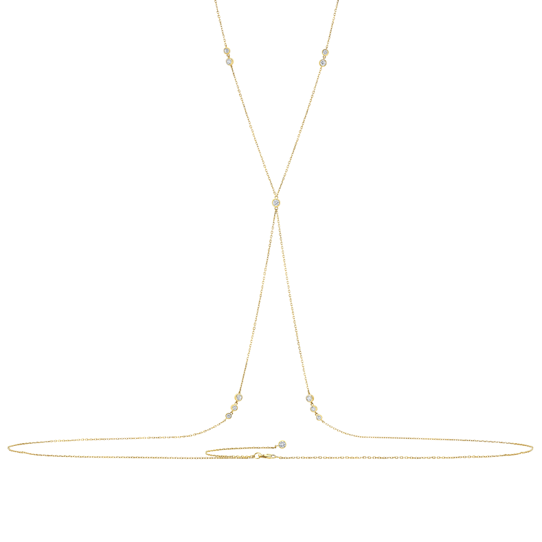 Immerse yourself in the allure of our Sky Askari Stars Collection with the exquisite Body Chain With Diamond Bezel. It is meticulously handcrafted in 18k gold and adorned with a total carat weight of 1.45 VS round brilliant cut diamonds. The diamonds add a chic touch, symbolizing the shining stars that gracefully twinkle with every movement on your body. Effortlessly elevate your style with this simple yet sophisticated body chain.