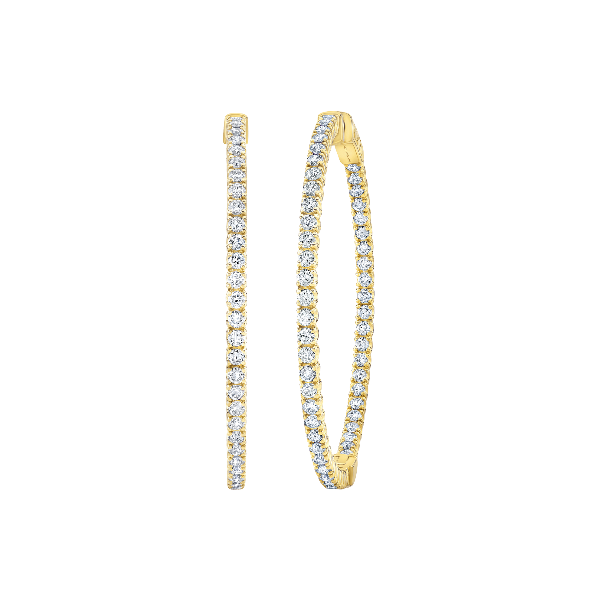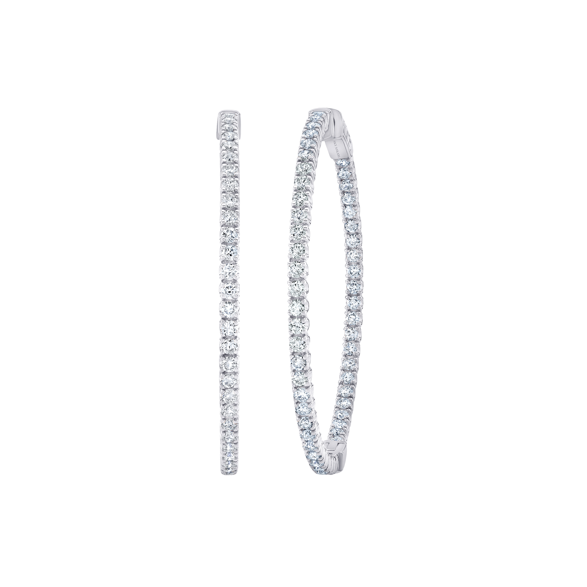 Immerse yourself in timeless luxury with our 18k Eternity Small Hoop Earrings adorned with large diamonds, showcasing an impressive total carat weight of 5.60 in round brilliant cut diamonds. Part of the Sky Askari Infinity Collection.