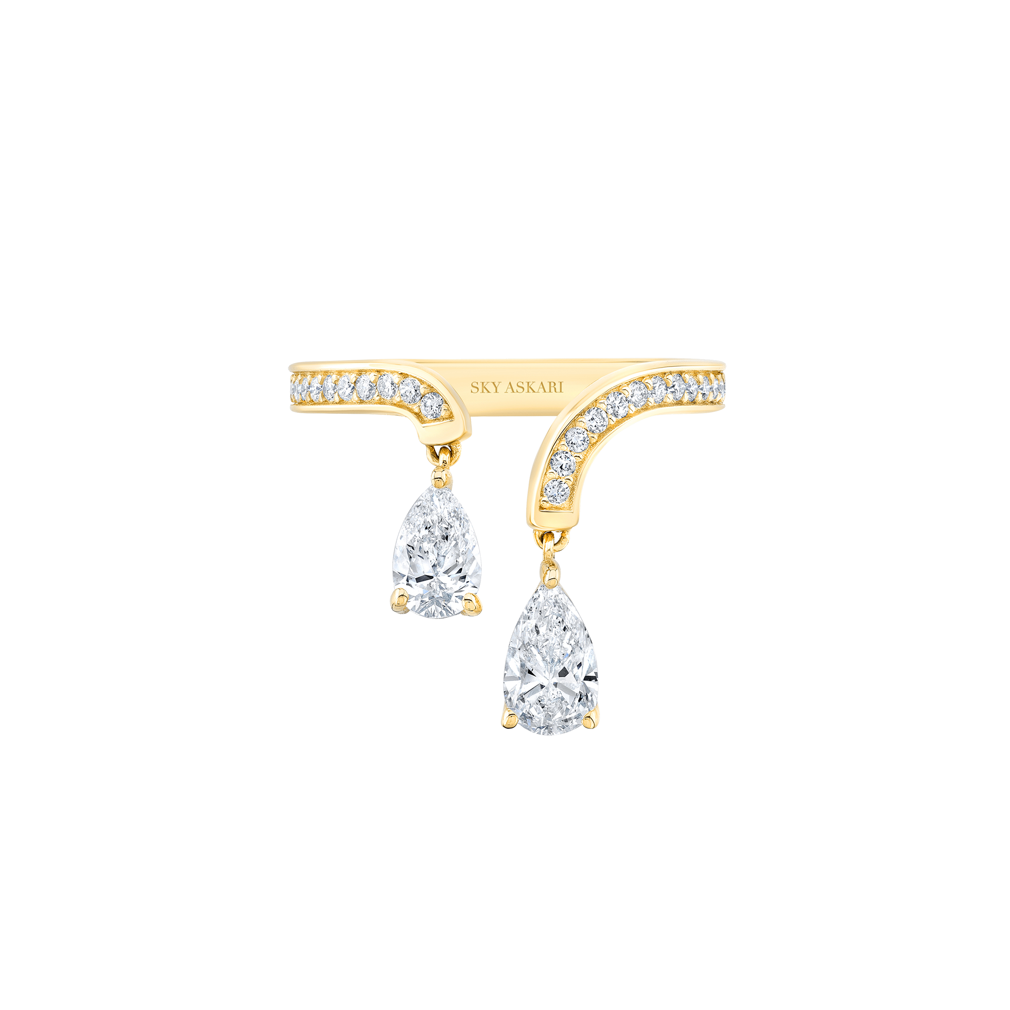 Add a luxurious touch to your collection with our 18k Cascade Ring, highlighting a total carat weight of 1.02 and featuring two drops. This dynamic ring from the Sky Askari Waterfall Collection has a playful movement and exudes a timeless elegance.