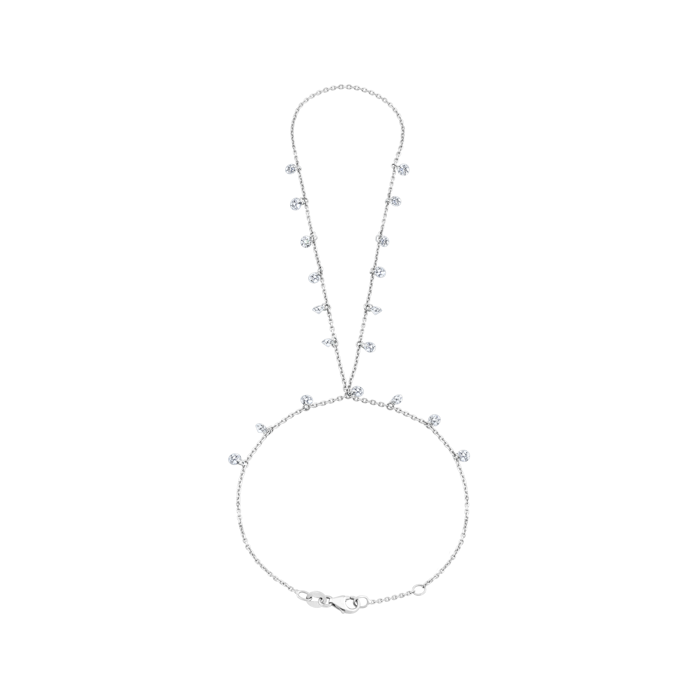 Experience the enchanting allure of our Sky Askari Stars Collection with this stunning 18K diamond Dangling Star Hand Chain. Meticulously crafted in 18K gold, it showcases a total of 1.82 carat VS diamonds. The glistening diamonds embellishing the chain bring a touch of sophistication, representing the shimmering stars that elegantly sway with each movement. Make a bold statement with this exquisite hand chain featuring a round brilliant cut.