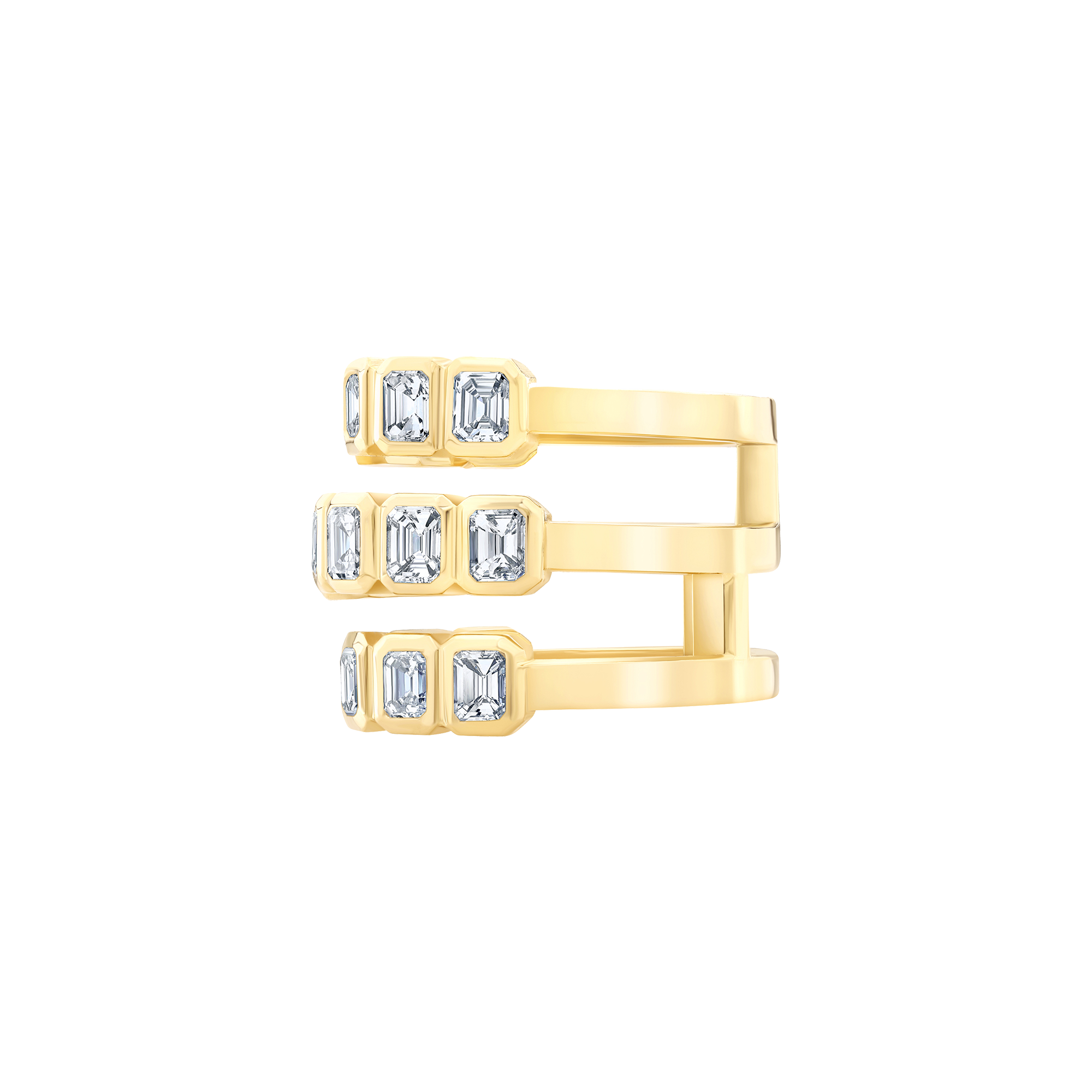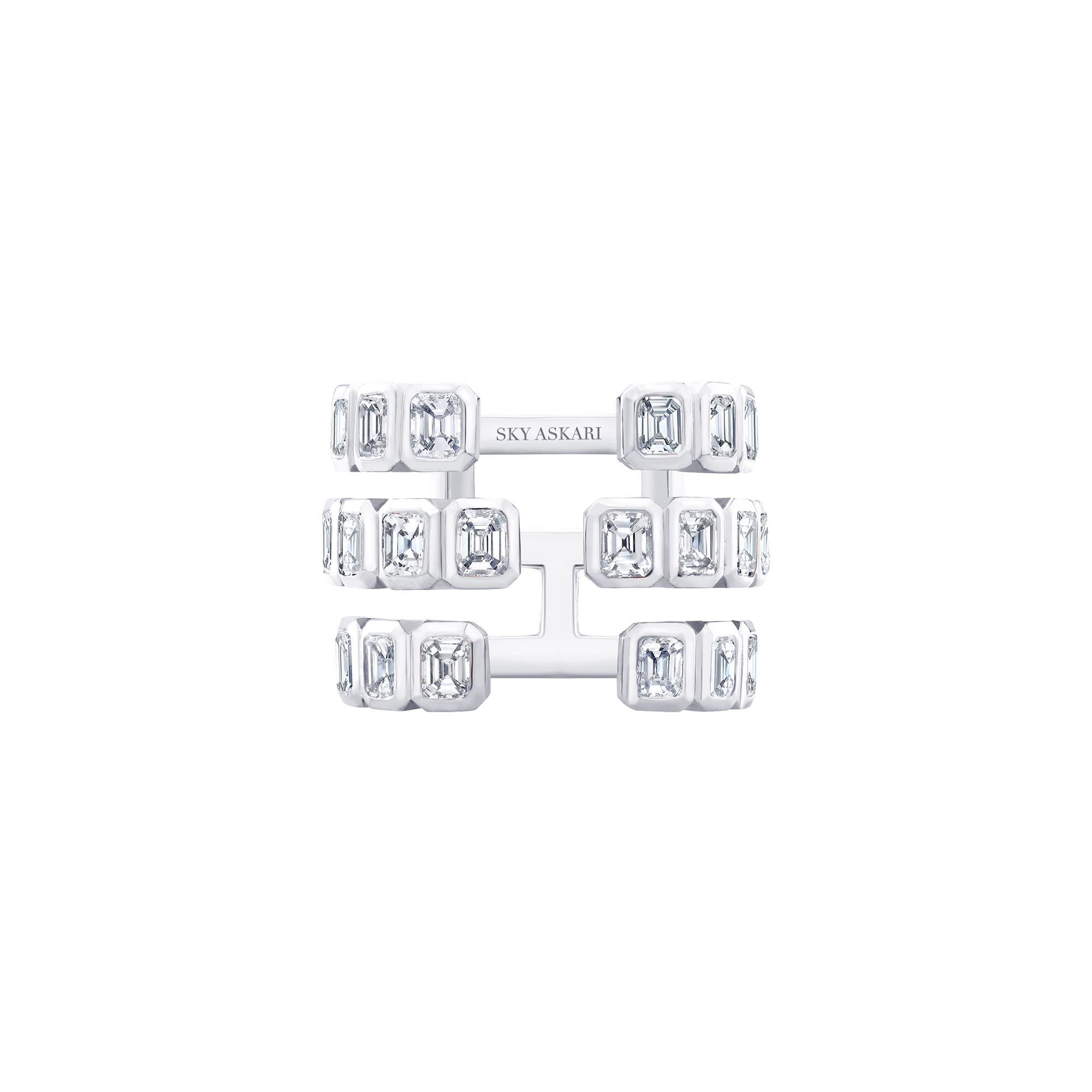Immerse yourself in the beauty of our Emerald Cut Unity Open Ring. A must for your collection, this 18K gold open ring features an emerald cut design, adorned with 2.85 carat VS diamonds. Part of the Sky Askari Unity Collection.