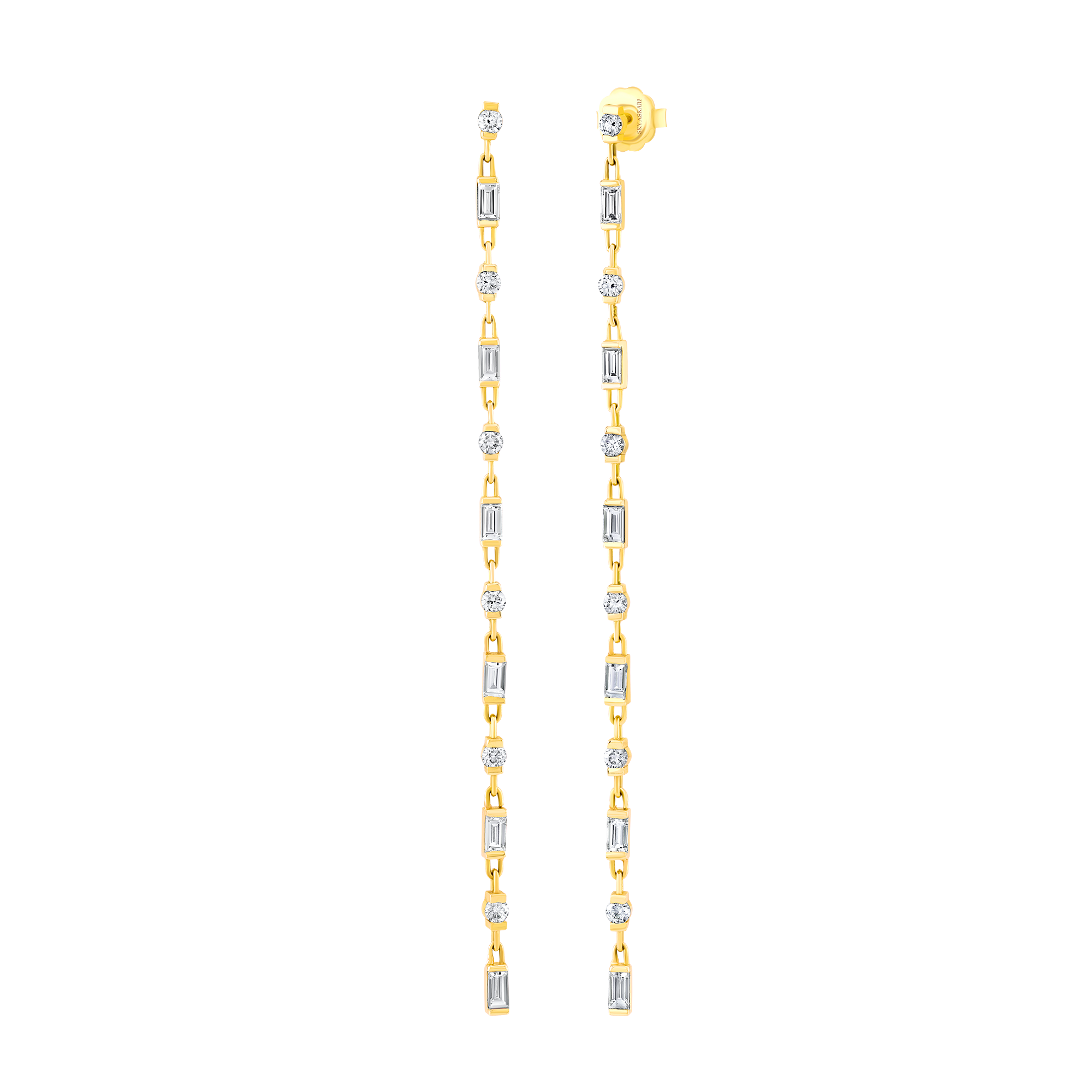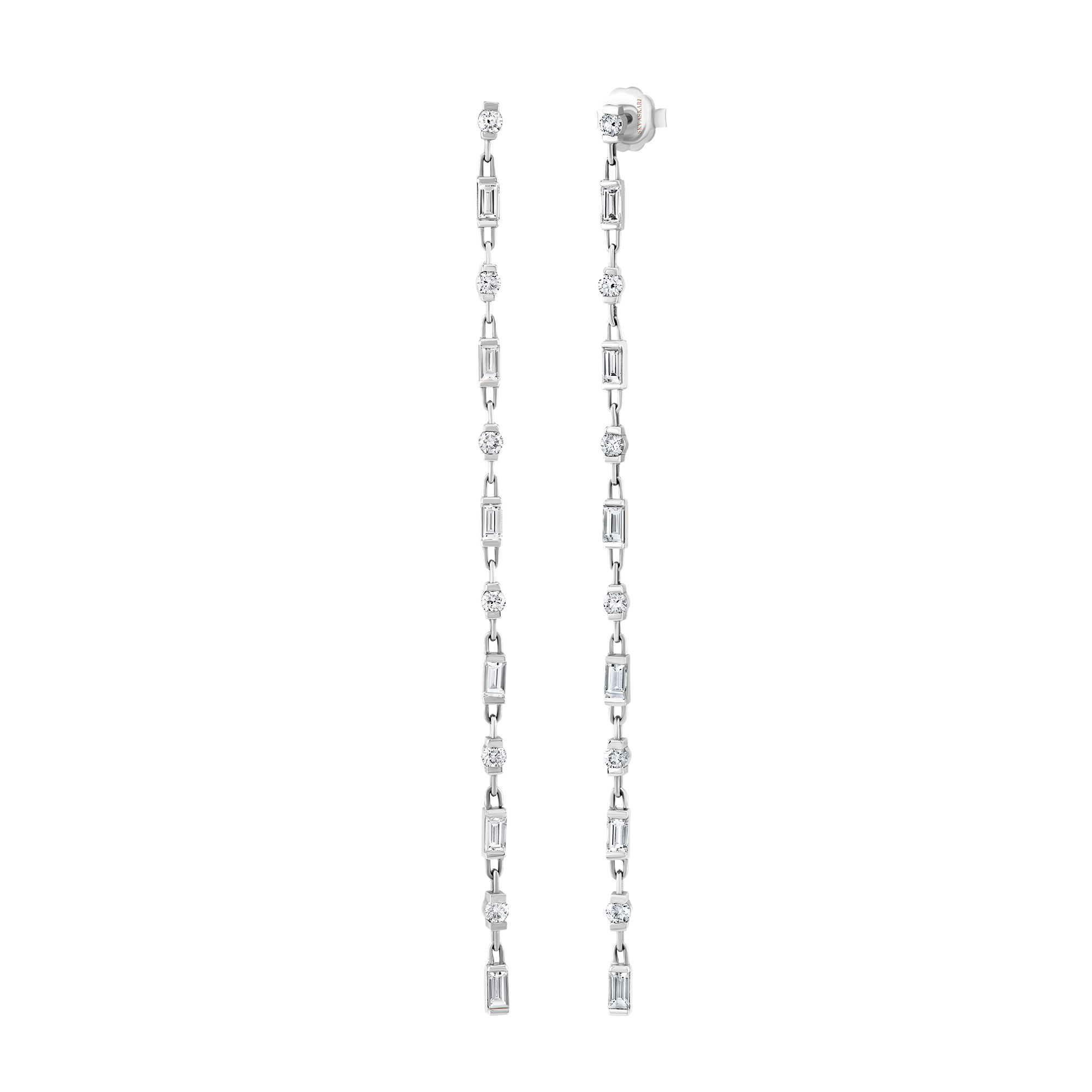 These gorgeous Extended Round Brilliant and Baguette Diamond Earrings showcase exquisite 18K extended round brilliant and baguette diamonds, weighing a total of 3.84 carats. The expertly crafted cut highlights the mesmerizing beauty of each stone, making this accessory from the Sky Askari Waterfall Collection a luxurious addition to any jewelry collection.