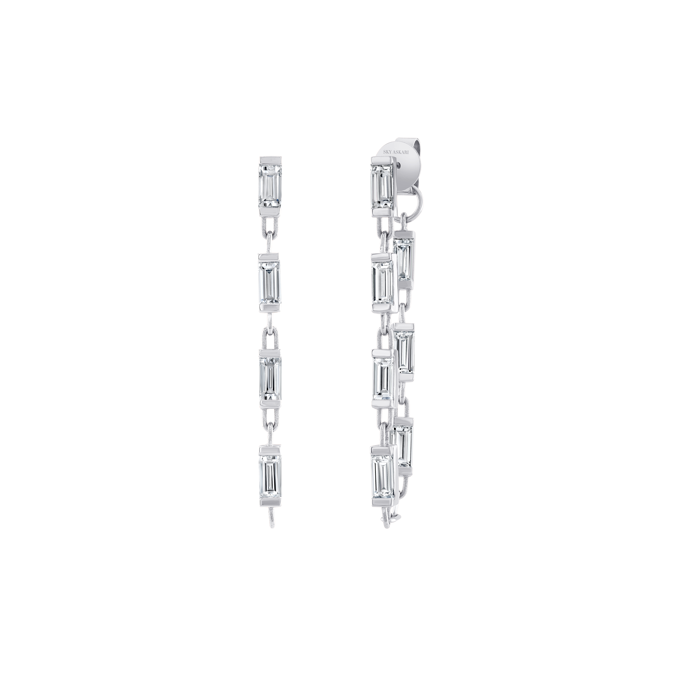 Add a touch of elegance and luxury to your look with our Flexible Hoop Baguette Earrings, featuring an 18K metal bezel and channel set. Adorned with a stunning 2.80 carat total weight of baguette cut diamonds, these earrings from the Sky Askari Waterfall Collection are the perfect accessory for an artful and sophisticated wardrobe.