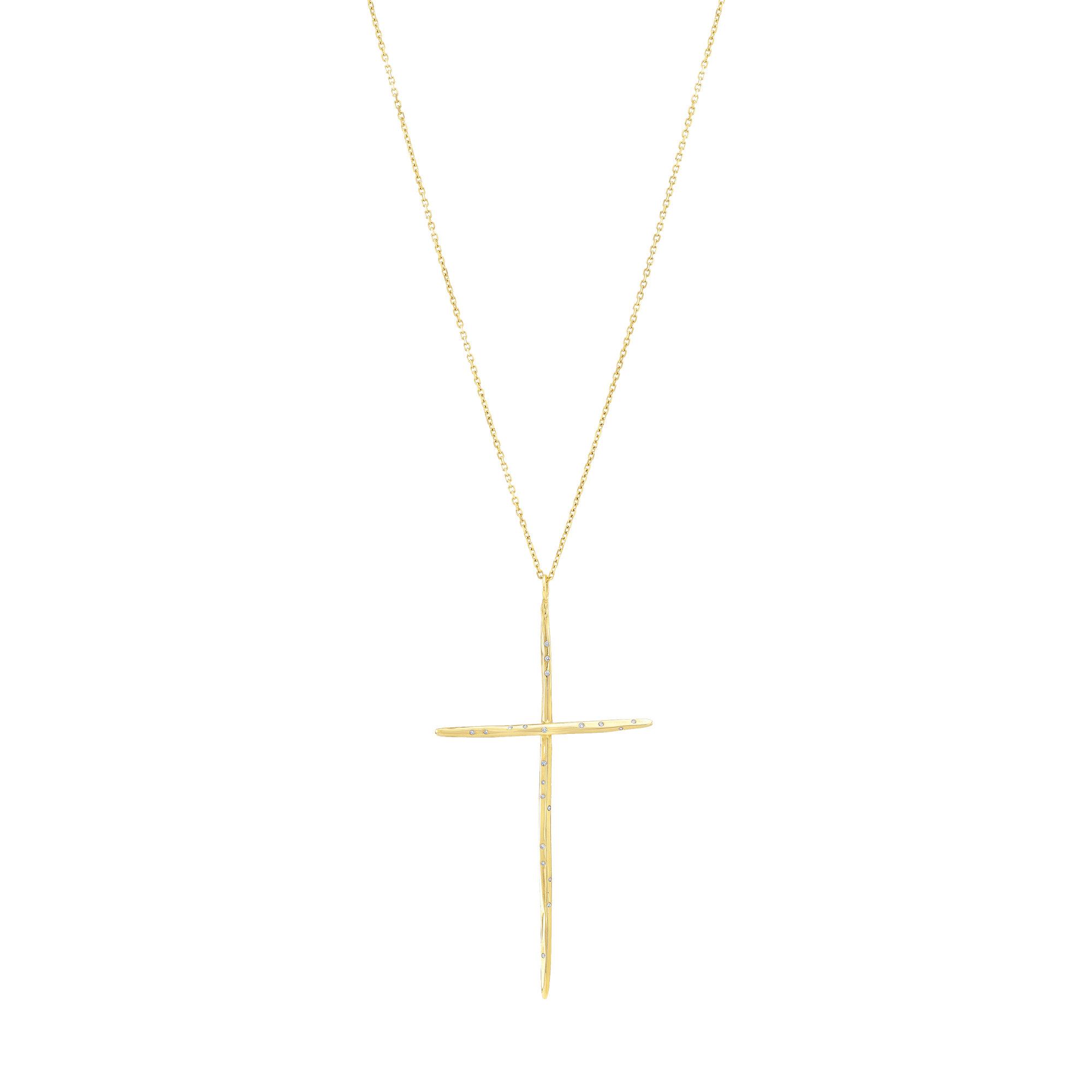 Experience pure luxury with our 18K gold Large Sculpted Cross Necklace, embellished with an exquisite 0.45 carat of VS round brilliant cut diamonds, elegantly showcased on a 20-inch chain. Add this piece from the Sky Askari Believe Collection.