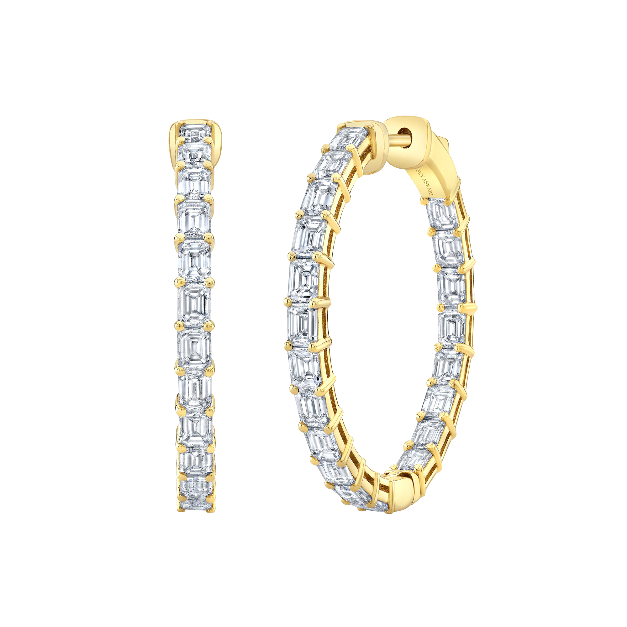 Add an artful, sophisticated accessory to your wardrobe with our 18K gold Medium Hoop Earrings with Emerald Cut. It's an essential piece of the Sky Askari Infinity Collection and a must for any jewelry aficionado.