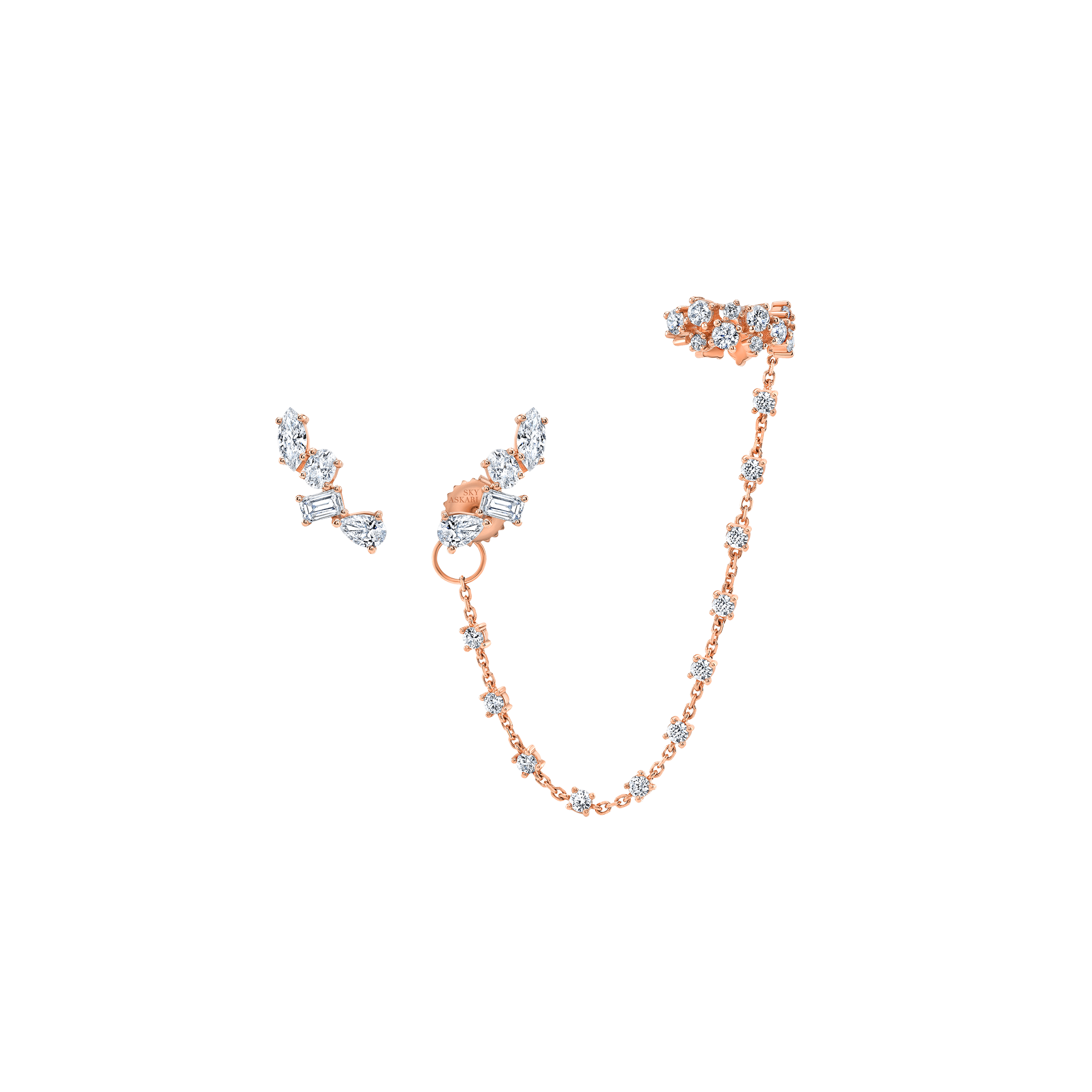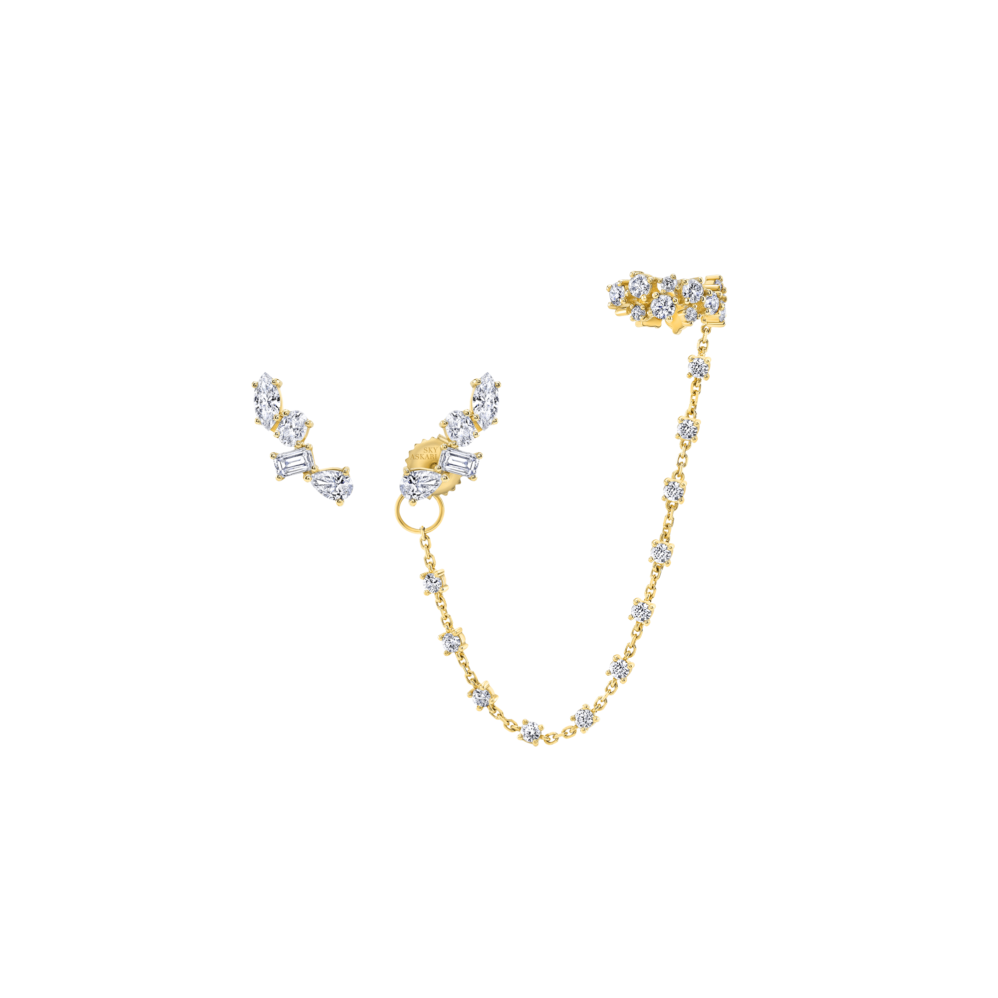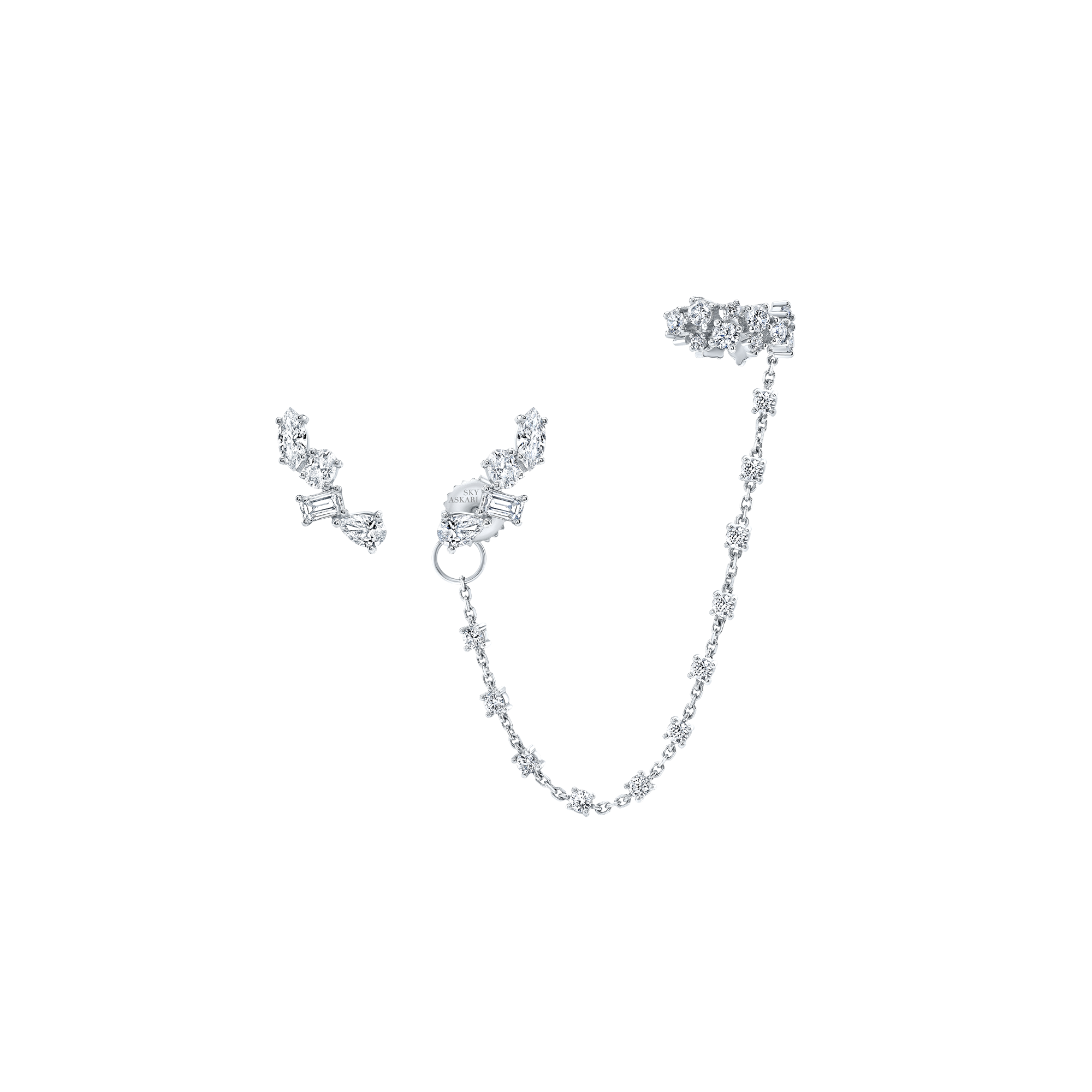 Show off your style with our 18k Multi-Shaped Floating Stud Earrings, featuring a detachable ear cuff. These earrings showcase a mix of fancy round and brilliant cut diamonds, totaling 2.10 carats. This selection from the Sky Askari Unity Collection is a unique and sophisticated addition to any fine jewelry anthology.