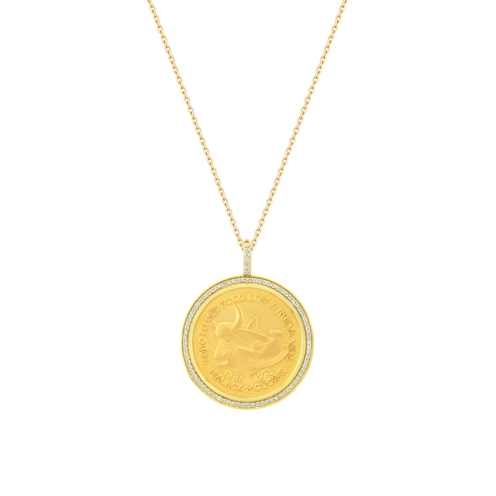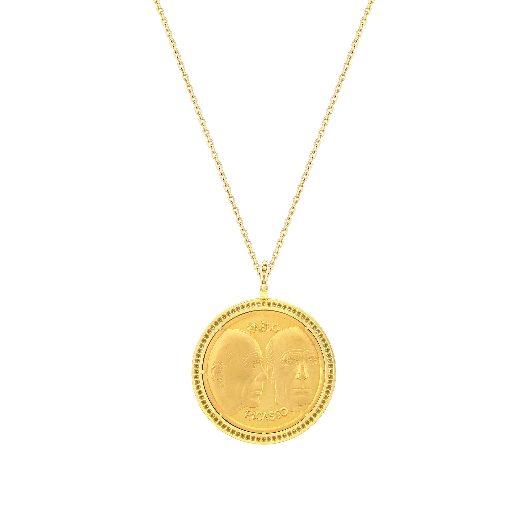 Experience pure luxury with our exquisite 18K gold Picasso Coin Necklace featuring a one-of-a-kind Picasso coin and 1.35 carat of stunning round brilliant cut diamonds. The necklace measures 24 inches in length and is part of the Sky Askari Coin Collection.
