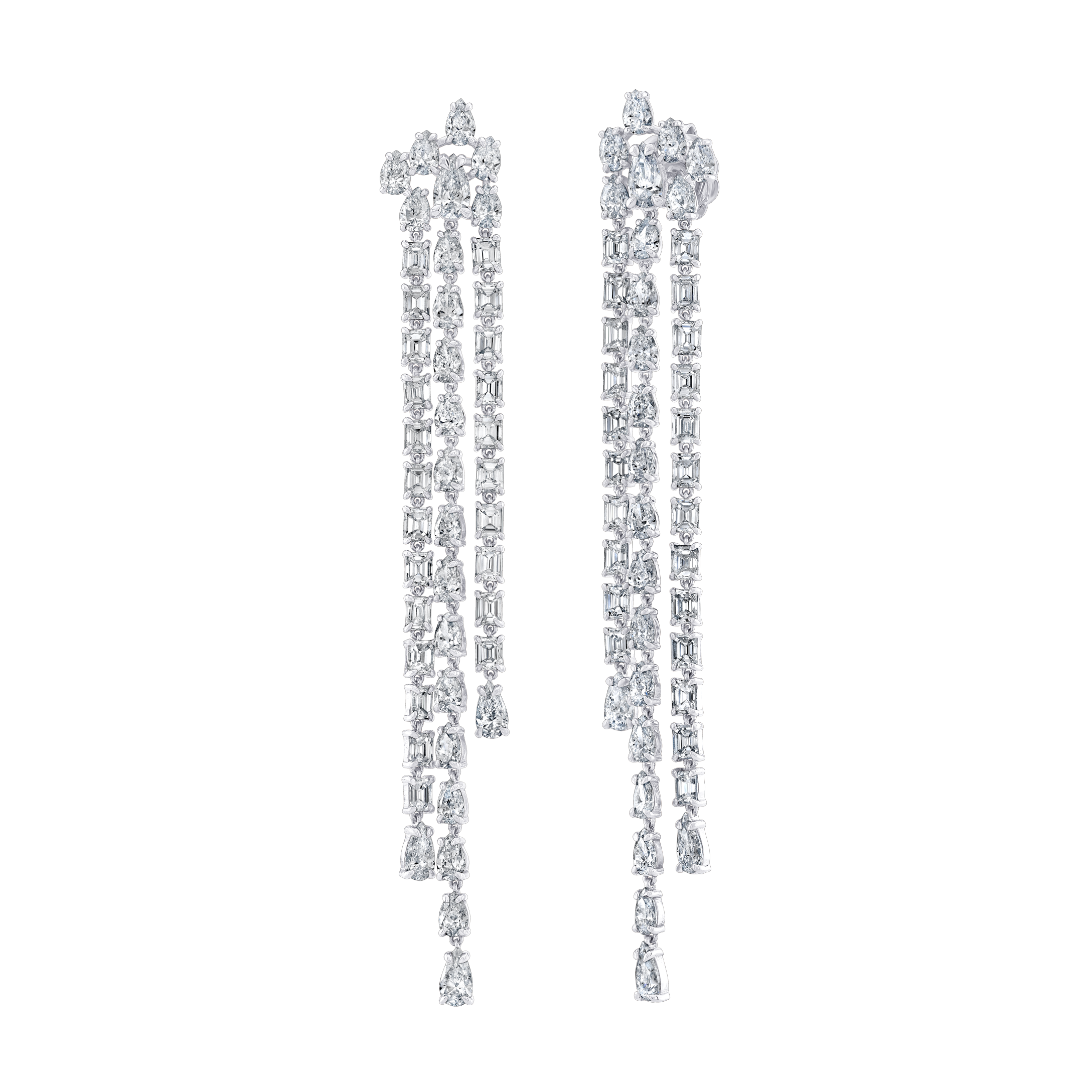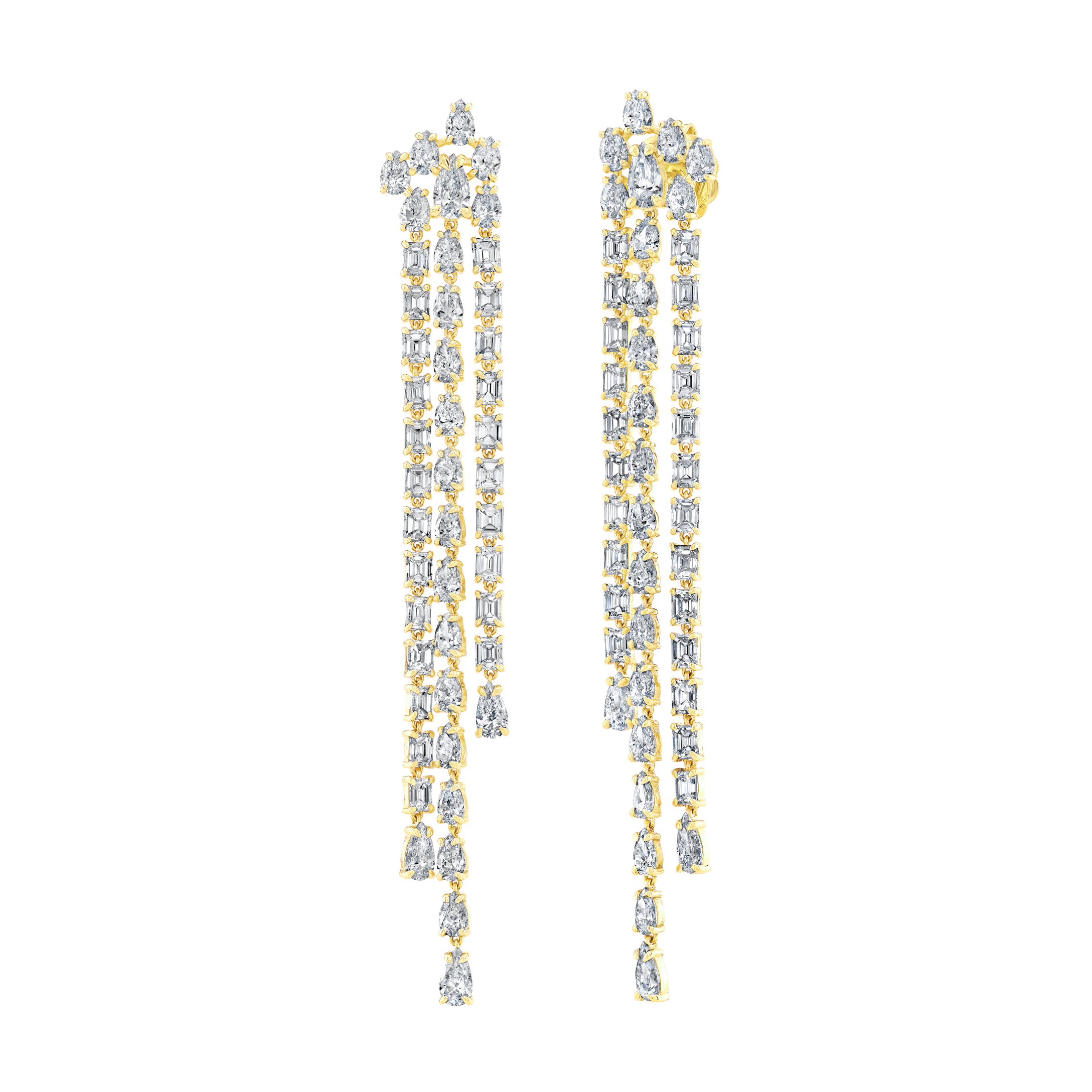 Indulge in the opulence of our 18K bezel prong-set diamond earrings, boasting a dazzling carat total weight of 13.21. Crafted with precision and exquisite taste, these Waterfall Pear and Emerald Cut Earrings feature the impeccable sparkle of VS cut emerald and pear cut diamonds. Part of the Sky Askari Waterfall Collection.